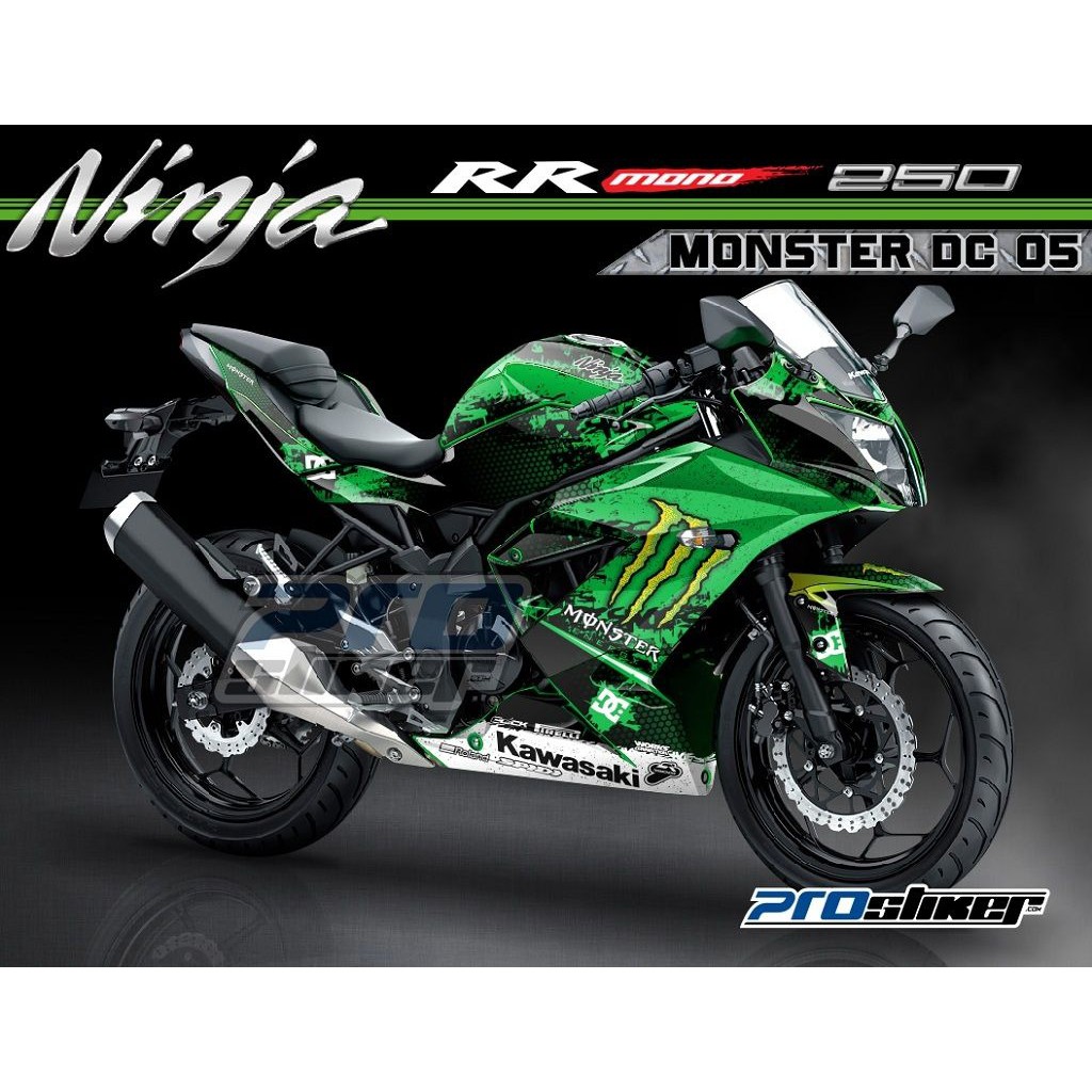 Decal Kawasaki Ninja Rr Mono 250cc Motif Monster Dc Hijau Semua Siap