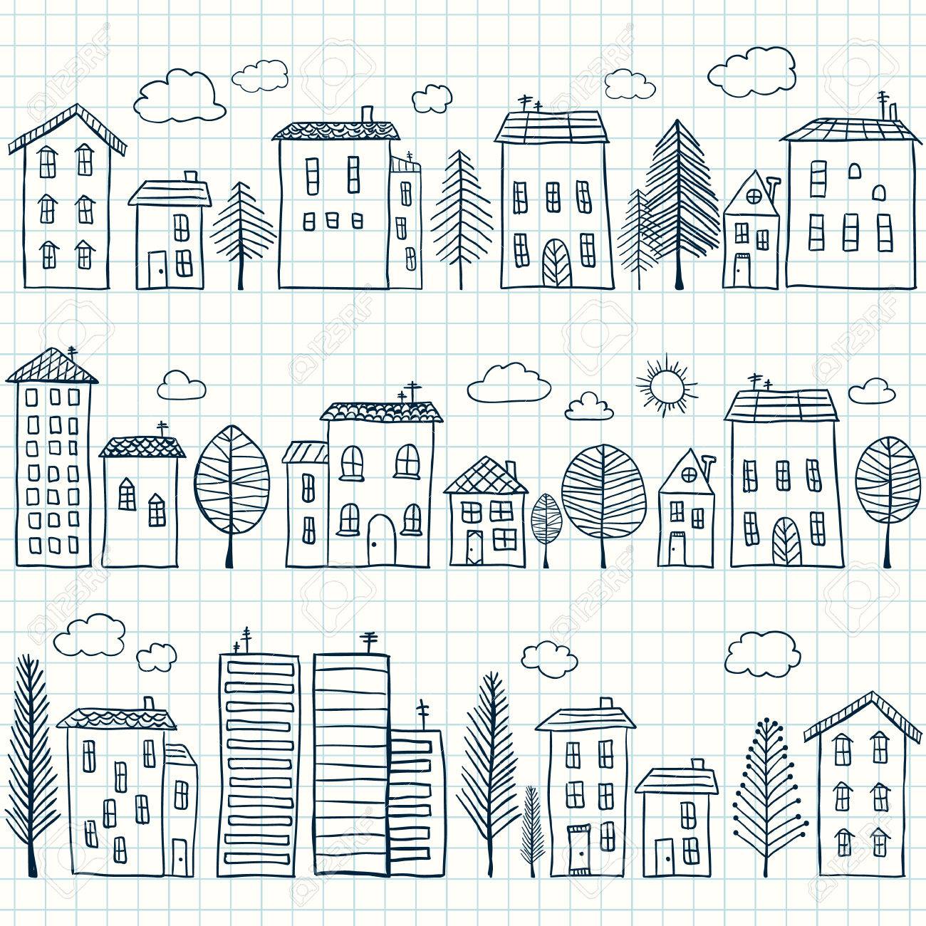 Illustration De Maisons Dessinees A La Main Sur Du Papier Quadrille